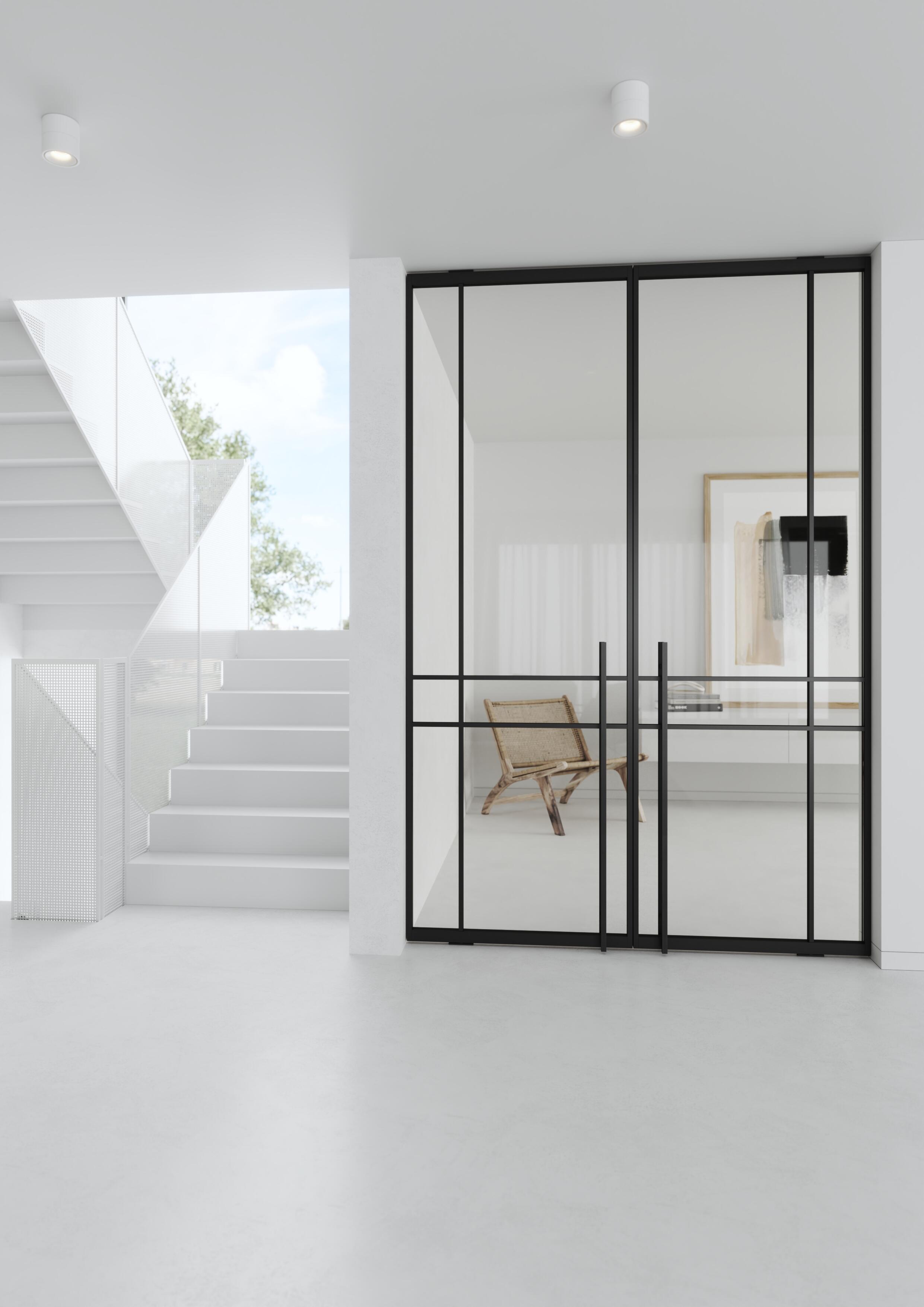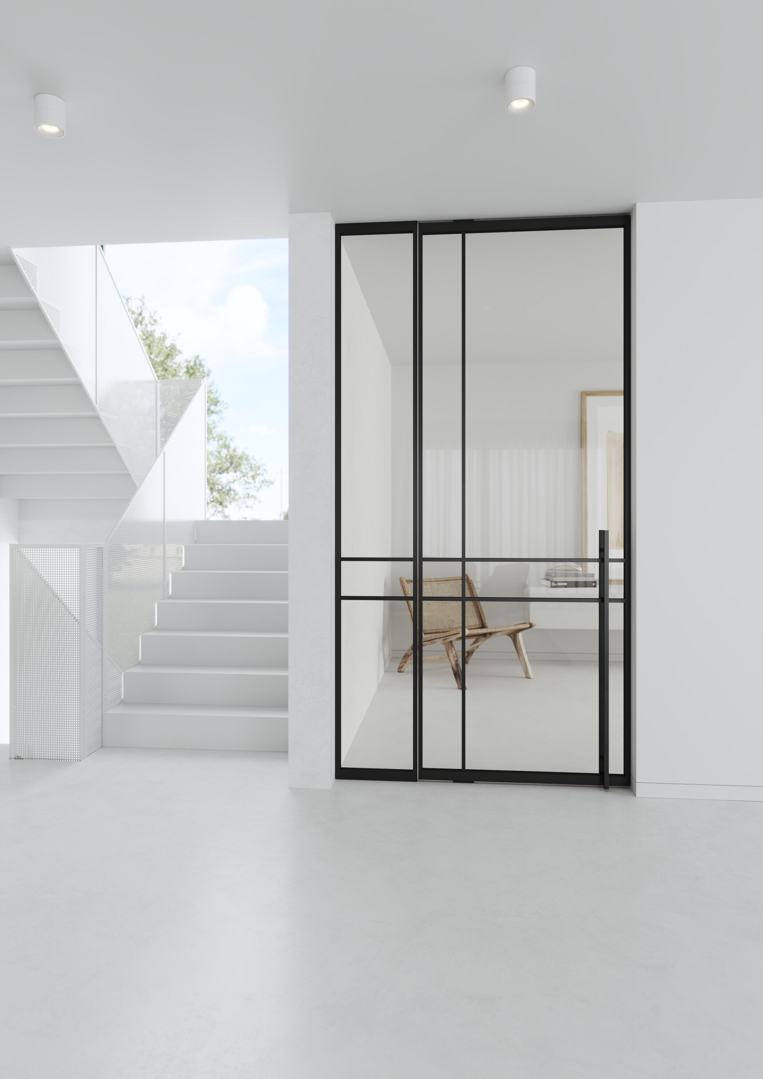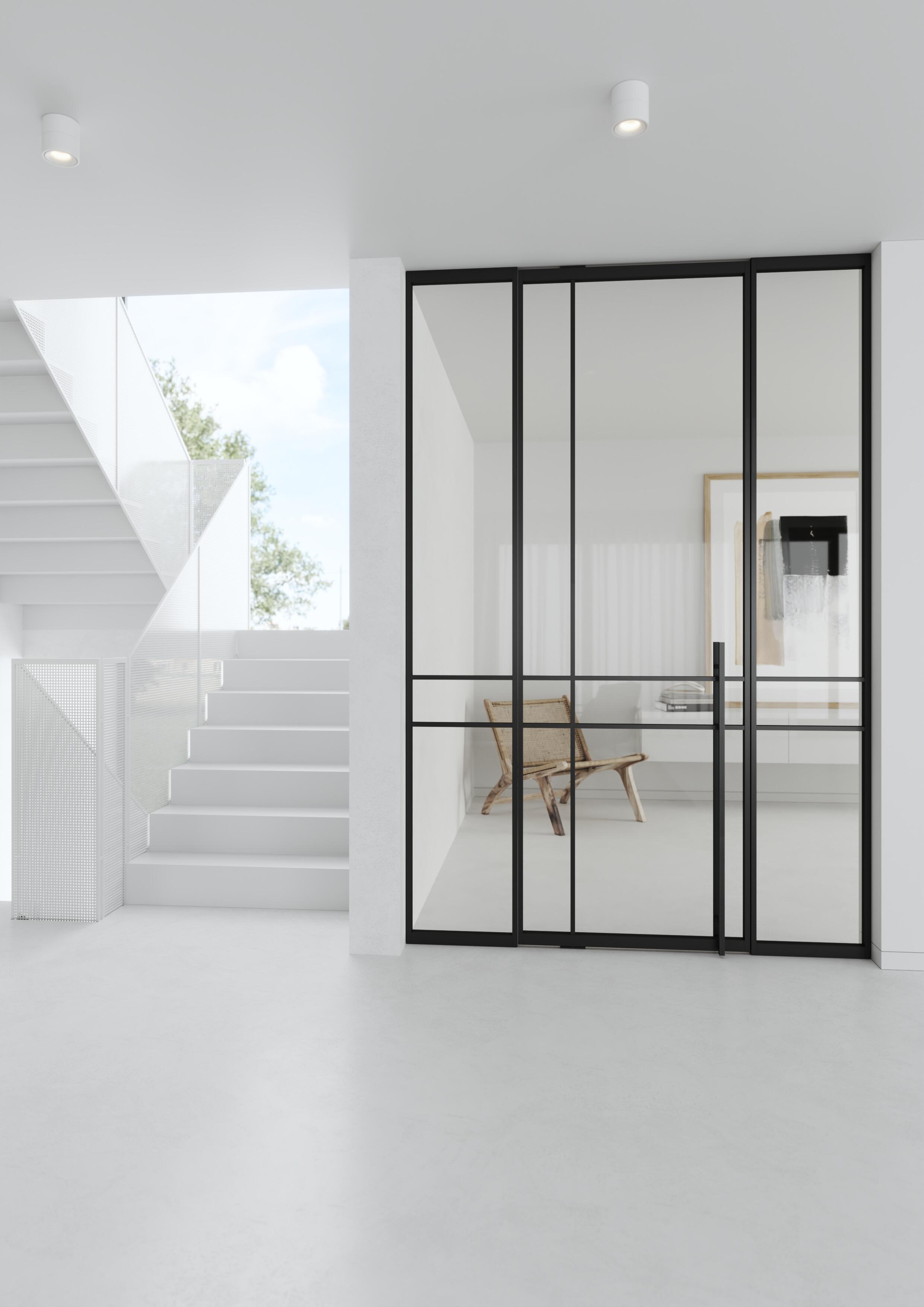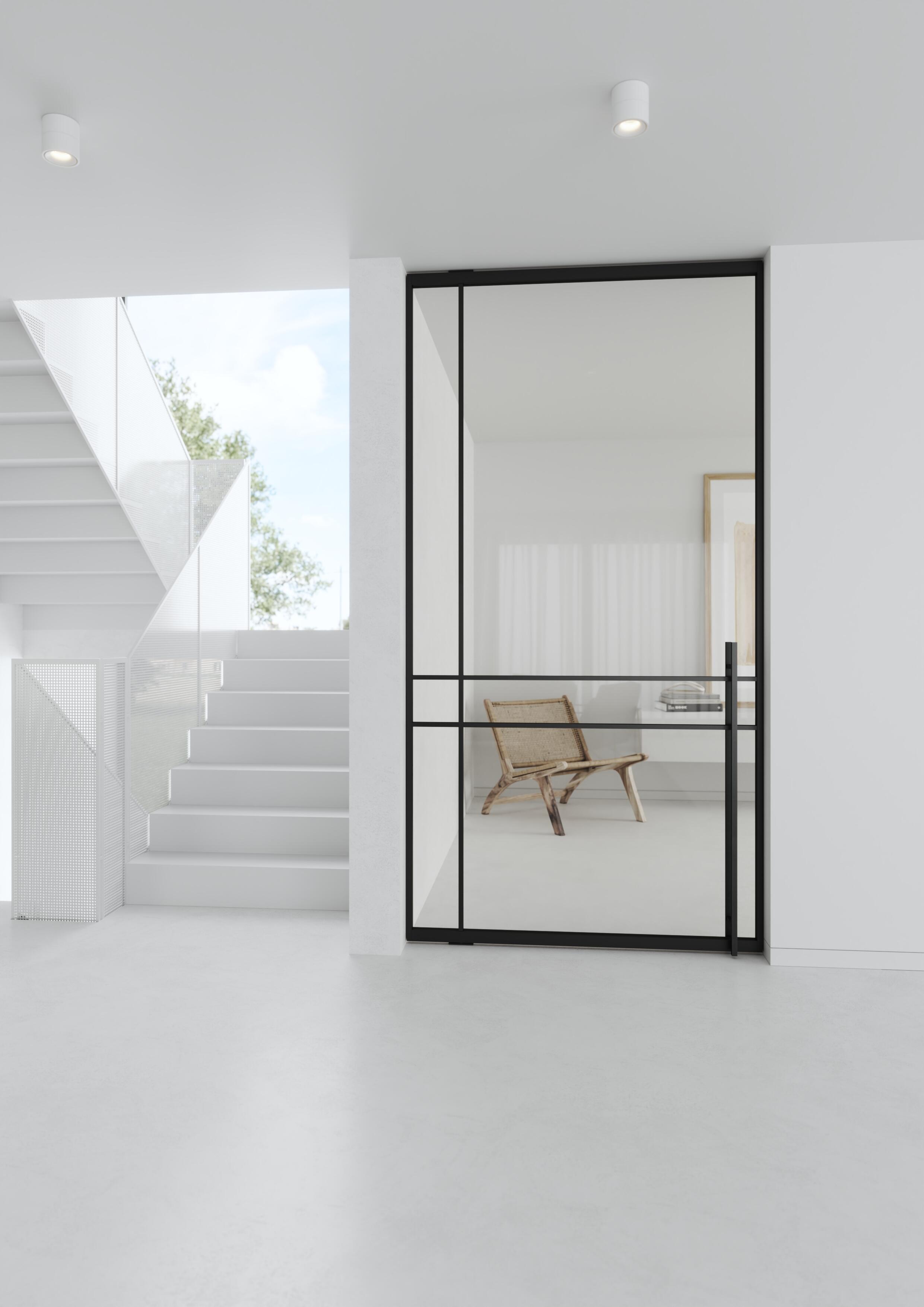 Všechny modely mohou být dvoukřídlé a doplněny o fixní boční světlíky. Pivotový pant se posouvá vždy podle výšky a šířky dveří. Barevnost je dána vzorníky RAL, NCS a JAP Metalic.