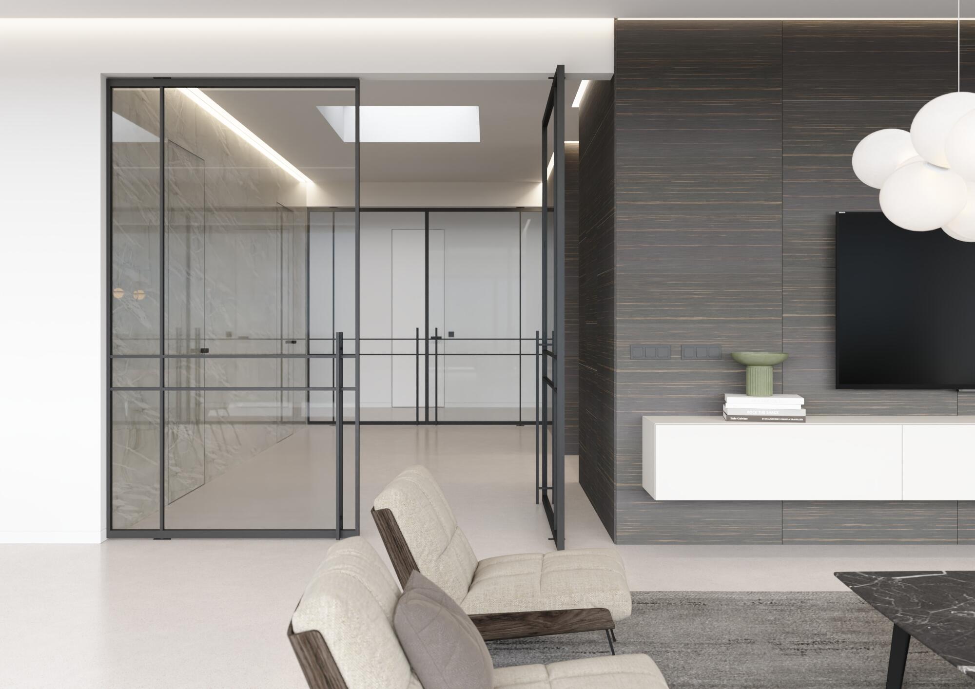 Pro model Divaline je charakteristické pohledové rozdělení skla subtilními svislými nebo vodorovnými hliníkovými profily v různých vzájemných uspořádáních.