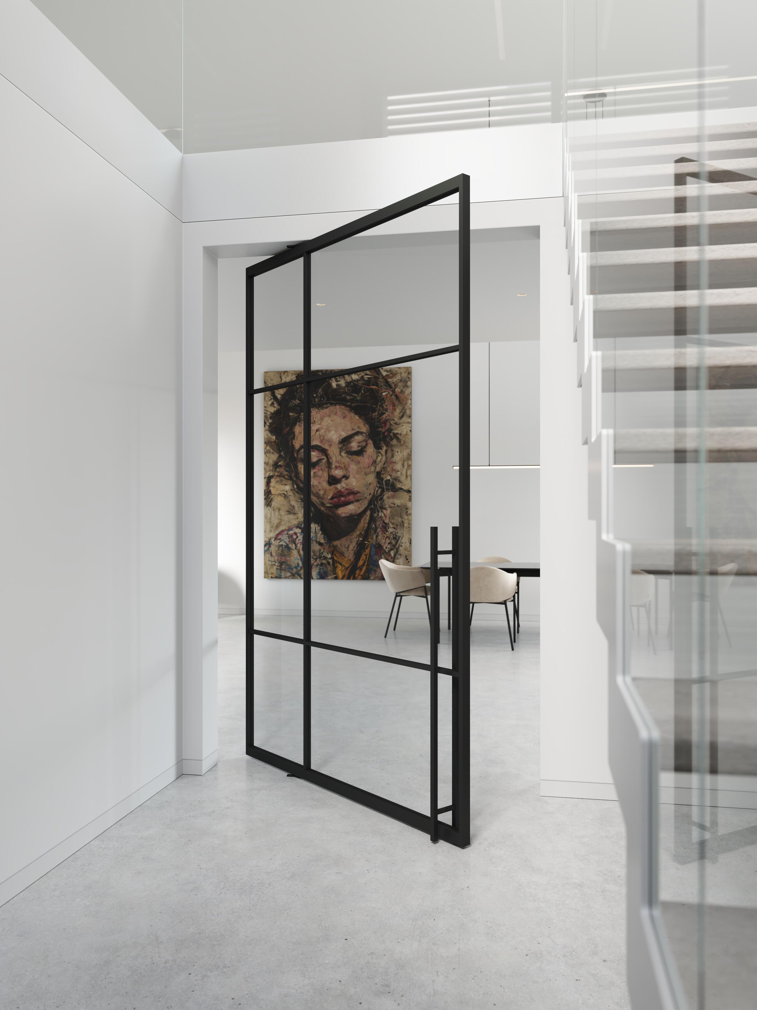 Všechny modely mohou být dvoukřídlé a doplněny o fixní boční světlíky. Pivotový pant se posouvá vždy podle výšky a šířky dveří. Barevnost je dána vzorníky RAL, NCS a JAP Metalic.