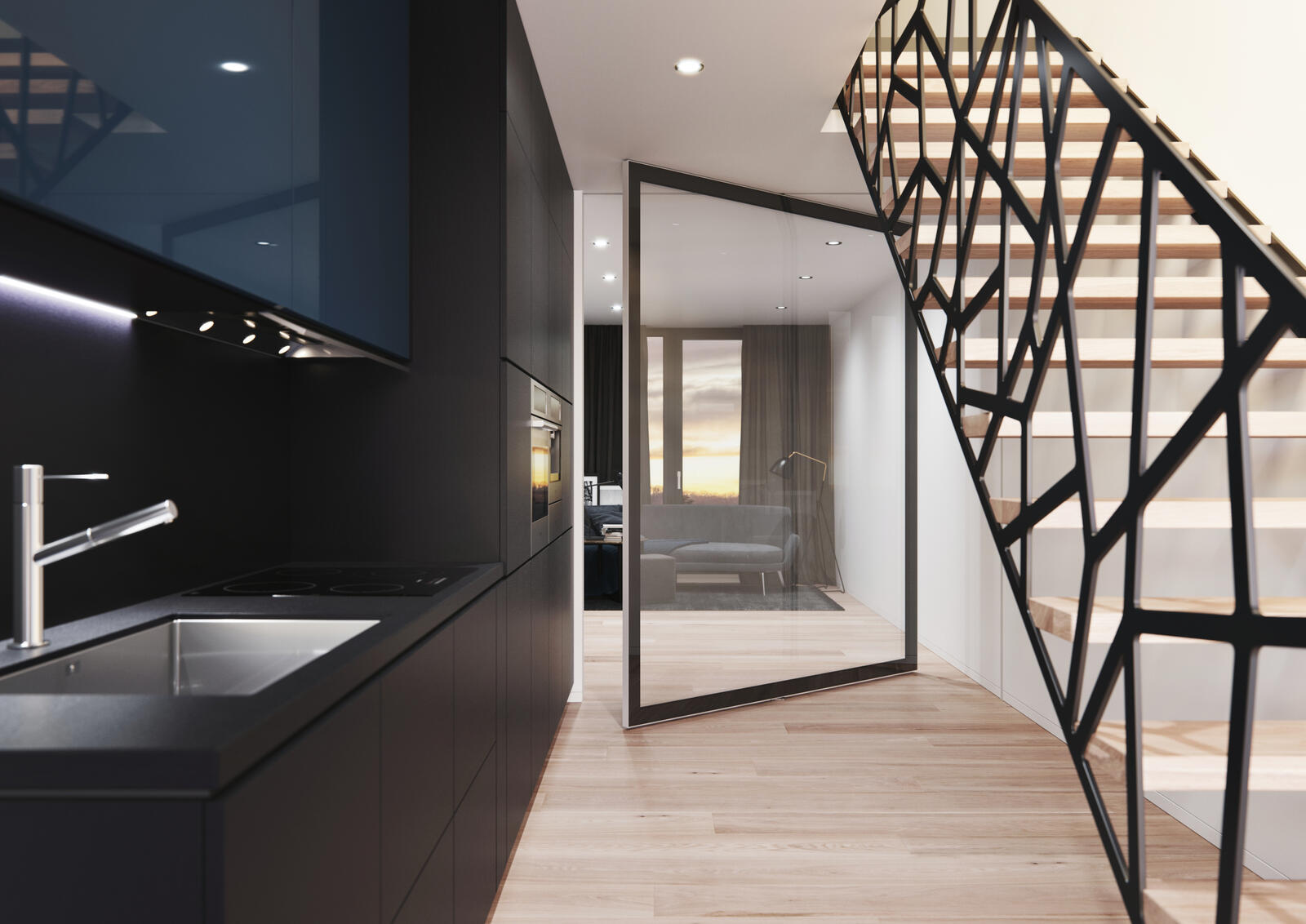 - Der Rahmen der Tür besteht aus einem natureloxierten Aluminiumprofil – Oberflächenbehandlung nach den Farbstandards RAL K7, NCS, JAP METALLIC möglich