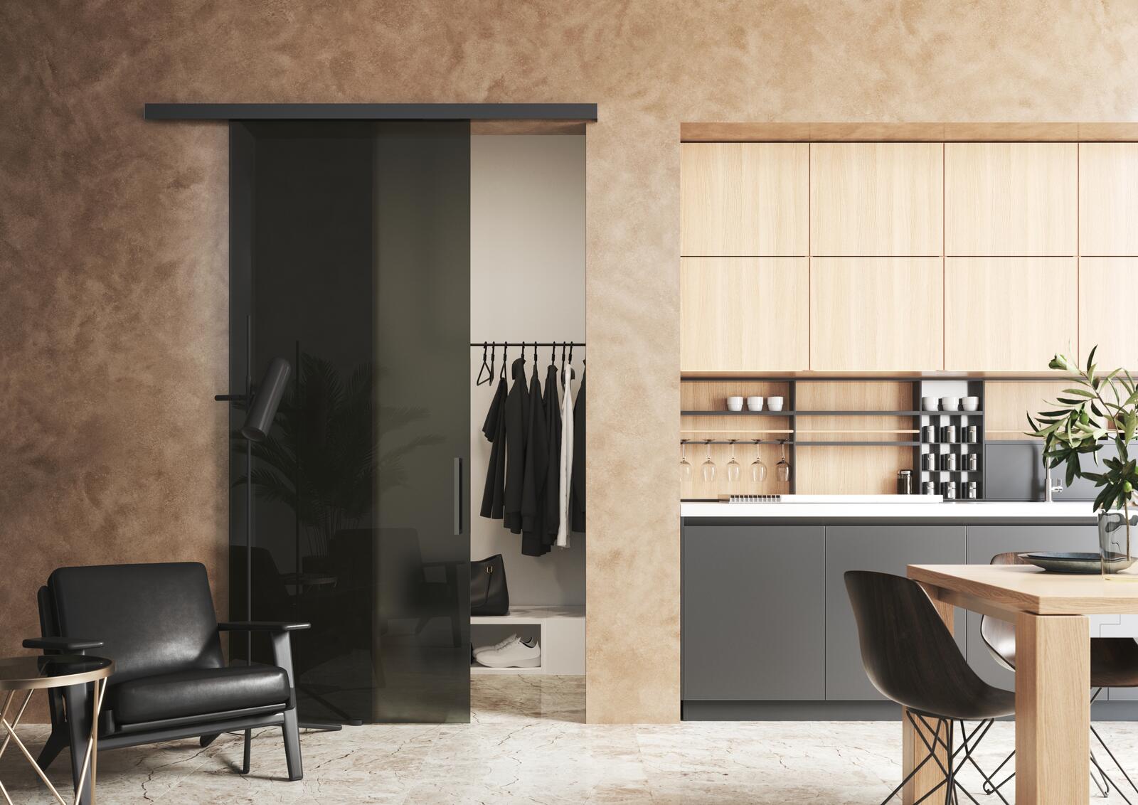 - Die Montage der Schiebesysteme kann direkt an der Wand über der reinen baulichen Öffnung oder über der Verkleidung erfolgen.