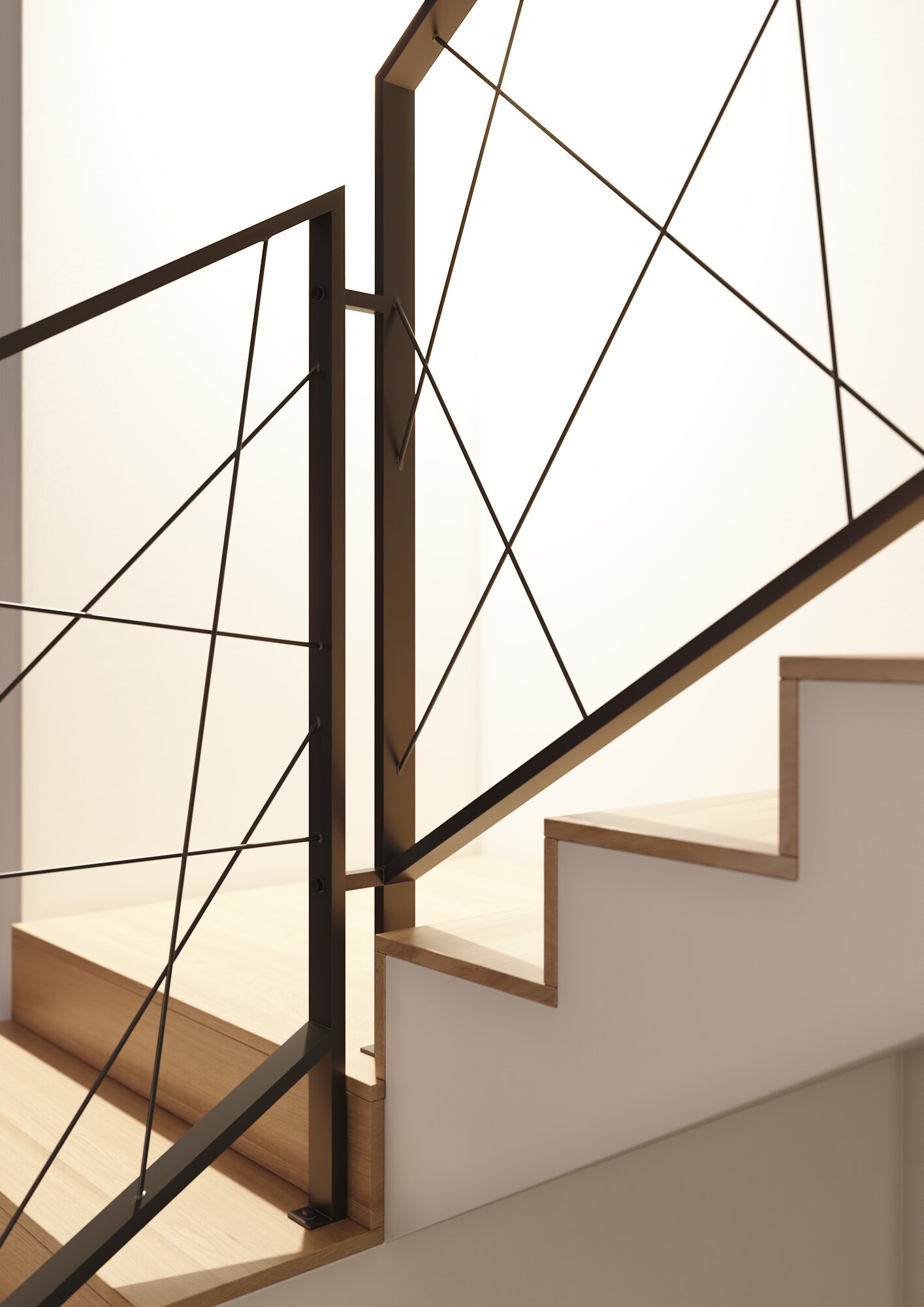 Das Innengeländer FANTASY hat eine Grundkonstruktion aus einem Stahlrahmen und einer Füllung aus Stahlstäben, die zu einer unregelmäßigen Füllungsstruktur verschweißt sind. Die Auswahl der Abmessungen der einzelnen Materialien ermöglicht eine flexible Gestaltung. Die Befestigung des Geländers kann auf zwei Arten erfolgen. Entweder an der Seite der Treppe oder an Pfosten, die auf den Trittstufen montiert sind. Das Modell FANTASY ist in Farben nach Kundenwunsch oder in Edelstahl erhältlich.