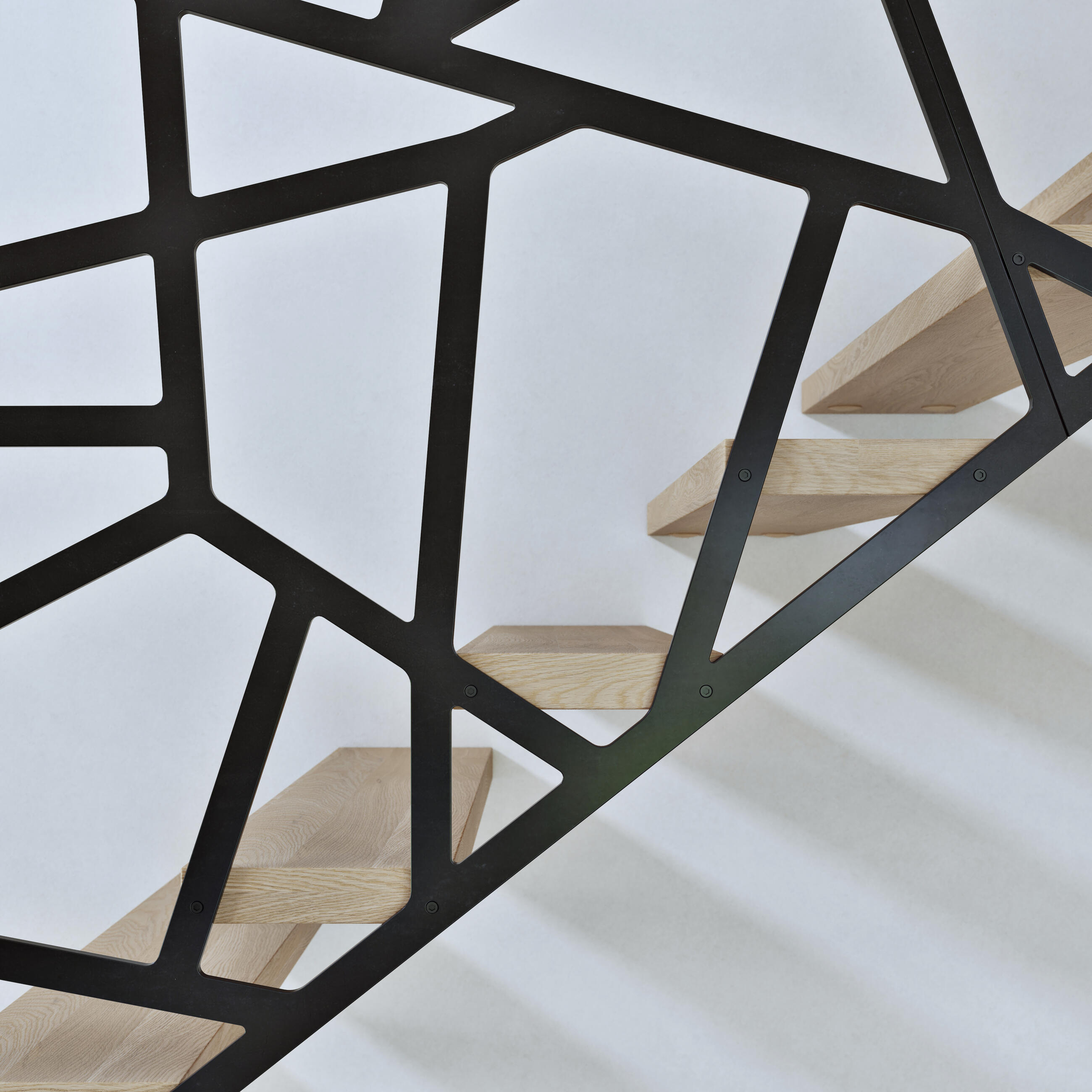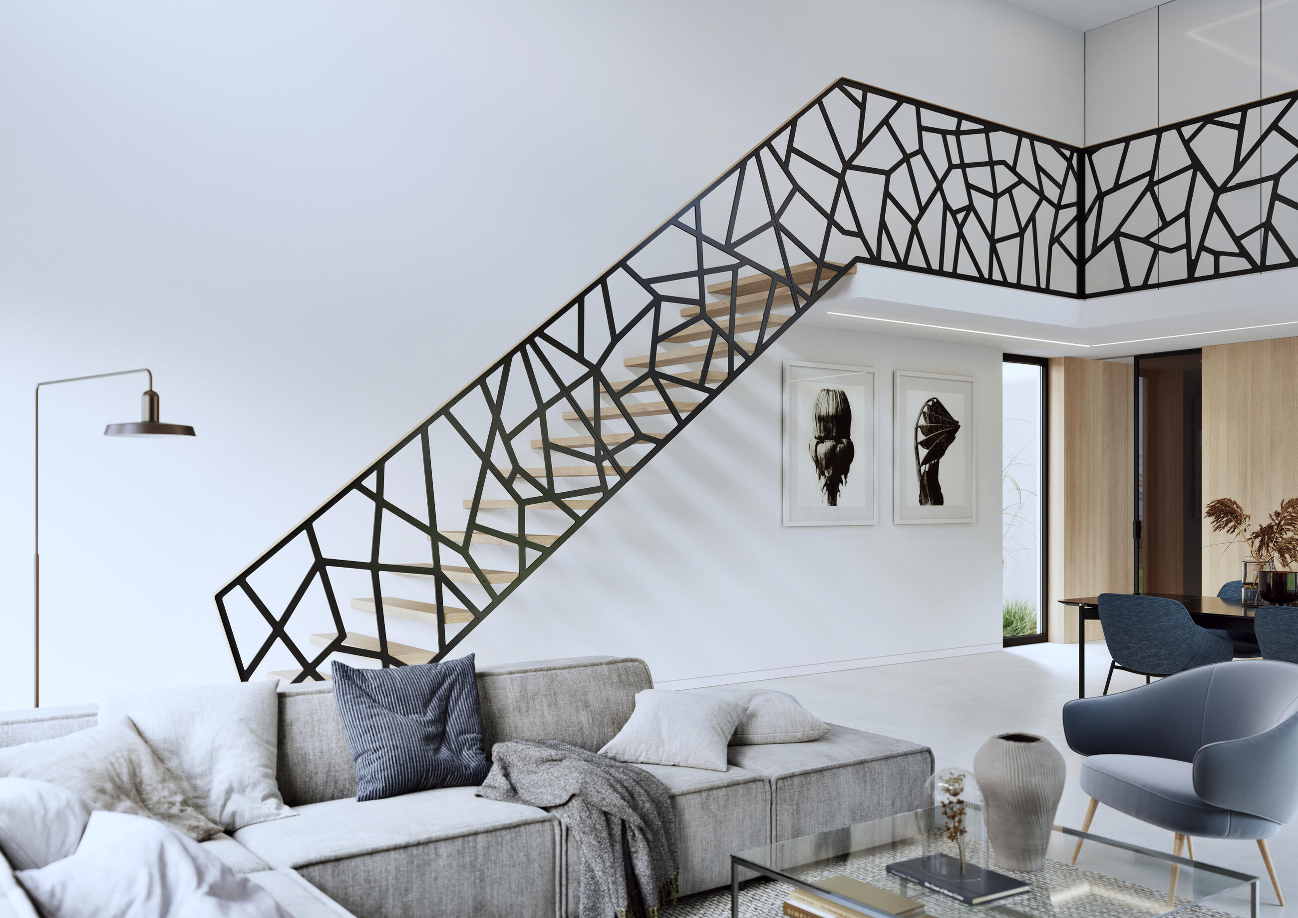 „Das Innengeländer OPERA hat eine Grundkonstruktion aus Stahlblech mit ausgebrannten Löchern und der Möglichkeit, einen Rahmen aus Profilen hinzuzufügen. Die Auswahl der Abmessungen der einzelnen Materialien ermöglicht eine flexible Gestaltung. Die Befestigung des Geländers kann auf zwei Arten erfolgen. Entweder an der Seite der Treppe oder an Pfosten, die auf den Trittstufen montiert sind. Das Modell OPERA ist in Farben nach Kundenwunsch oder in Edelstahl erhältlich.“