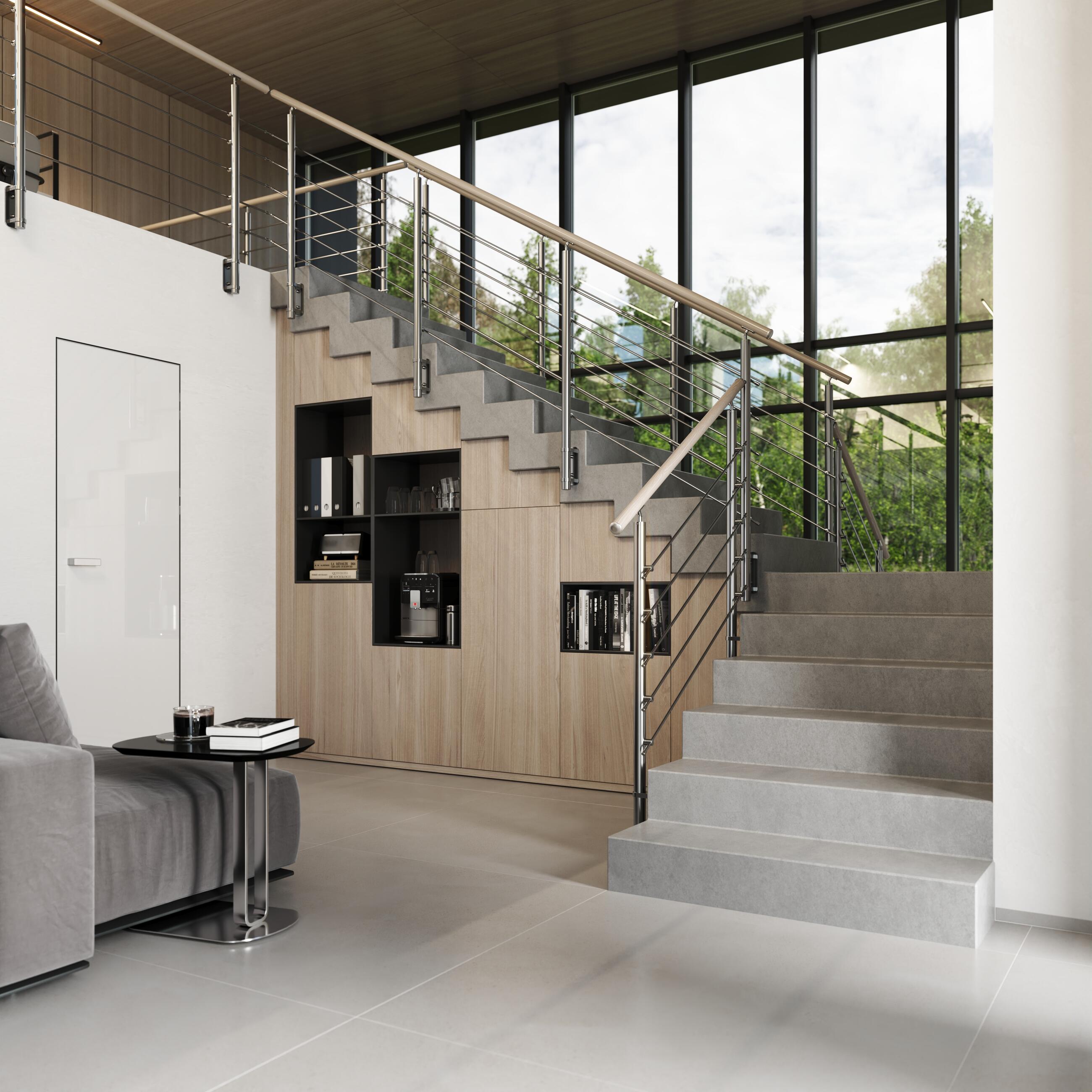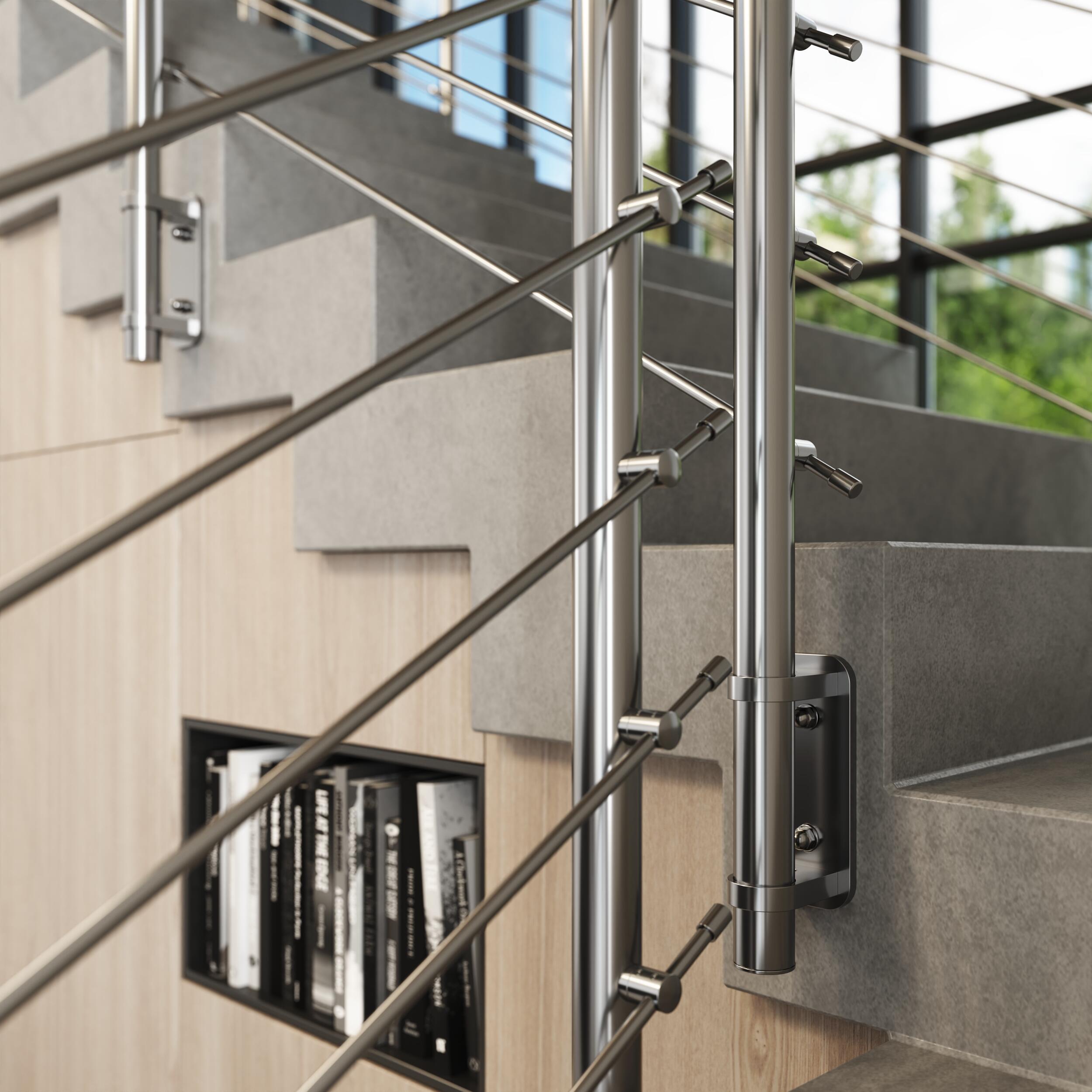 Das Innengeländer POPULAR hat eine Grundkonstruktion aus Pfosten, einer horizontalen Stabfüllung und einem Handlauf aus Edelstahl. Der Handlauf ist alternativ in Holzausführung erhältlich. Die Pfostenhalter aus Edelstahl werden seitlich an der Treppe oder oben auf den Trittstufen angebracht. Pfosten und Handlauf werden beim Modell POPULAR auch in RAL-Farbtönen nach Kundenwunsch gefertigt, die Stäbe sind dennoch aus Edelstahl.